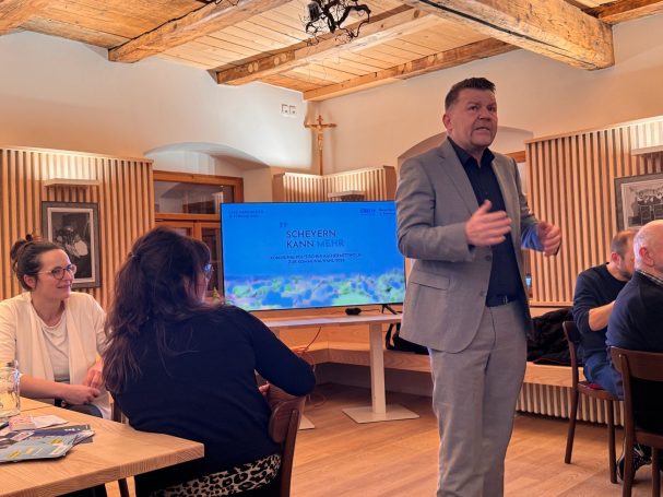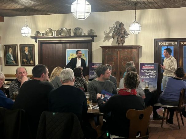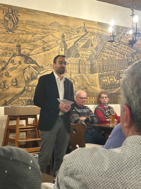 Am Aschermittwoch hatten Bürgermeisterkandidat Johannes Baumeister und die Gemeinderatskandidatinnen und -kandidaten von CSU und Bürgerblock zur Wahlveranstaltung ins Café Marienkäfer eingeladen. Im Mittelpunkt des Abends stand die Präsentation der Ergebnisse der Umfrage „Scheyern kann mehr – Ihre Meinung ist wichtig!“, die Baumeister gemeinsam mit seinem Team durchgeführt hatte. Darüber hinaus stellte sich auch Landratskandidat Andy Aichele den Gästen vor.