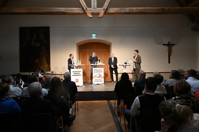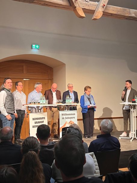 Am Freitag, 6. Februar, fand im stimmungsvollen Ambiente des Wittelsbacher Saals im Kloster Scheyern die Podiumsdiskussion der Gruppierungen zur Kommunalwahl sowie der Bürgermeisterkandidaten statt. Bereits im Vorfeld war das Interesse groß – was sich in einem vollständig gefüllten Saal ebenso zeigte wie an den zahlreichen Online-Zuschauern der Live-Übertragung auf pafnet.tv. Die Veranstaltung war hervorragend organisiert von Kilian Koch, für die Bewirtung sorgte der Jugendtreff Scheyern, Moderator Kevin Reichelt führte souverän durch den Abend.